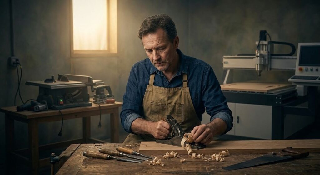 But something was lost at each step. The feel of wood shavings curling off a hand plane. The meditative focus of cutting a dovetail joint by hand. The quiet satisfaction of knowing that every surface, every edge, every joint came from your hands and your skill.